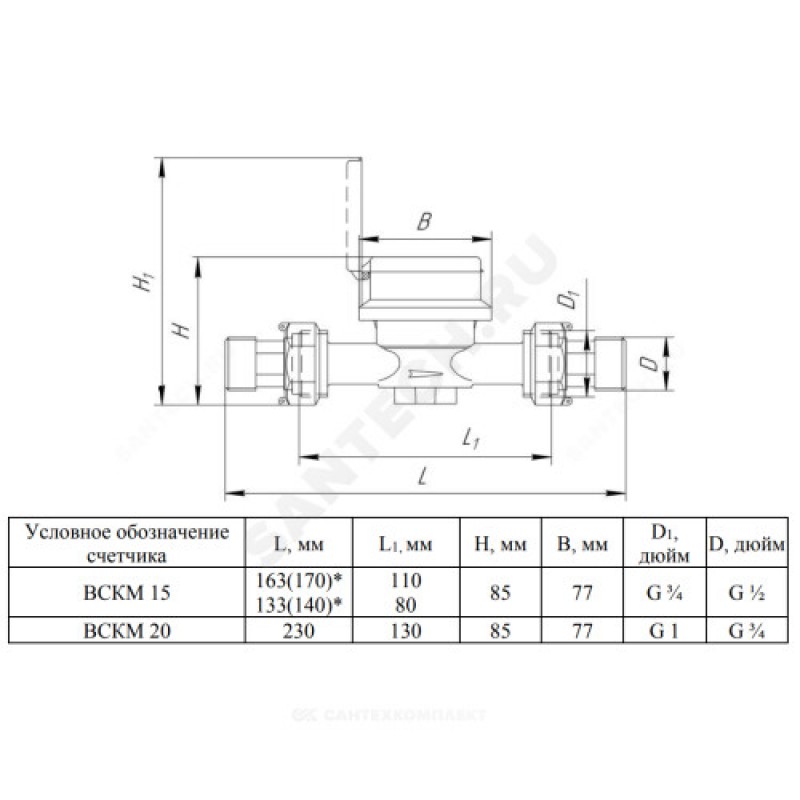 | Резьба на корпусе счетчика (трубная цилиндрическая) в дюймах | 3/4" |